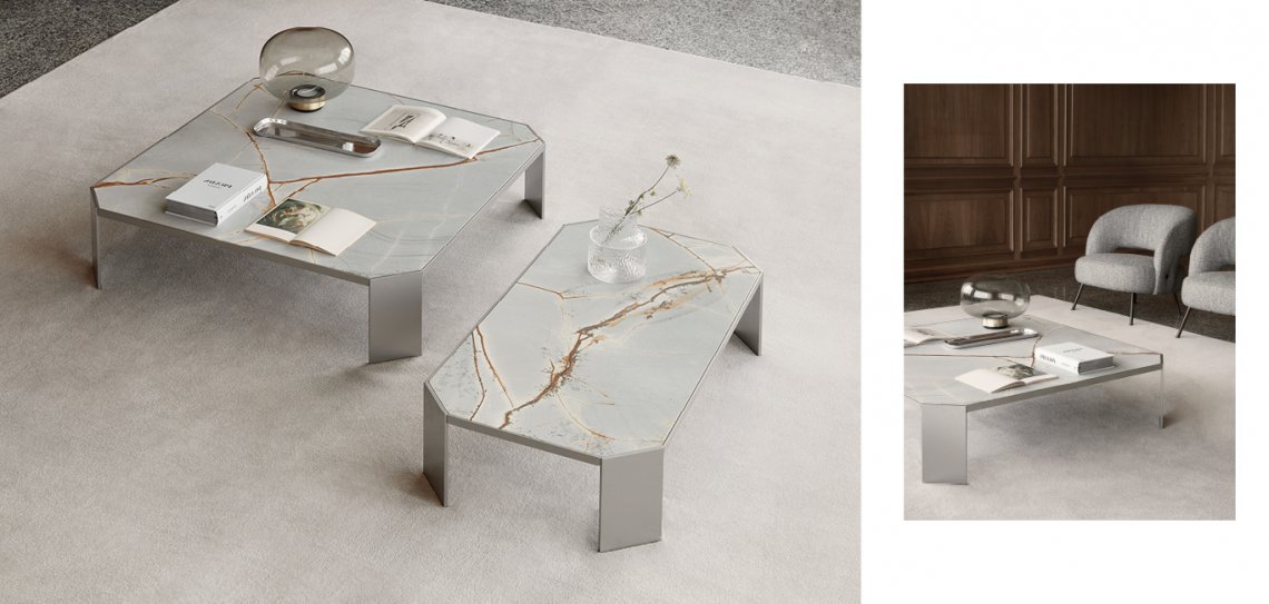 La collezione Picasso riprende il design dei tavolini Monet ma con una forma più ordinaria. L’accostamento di materiali differenti crea dei forti contrasti materici e permette di arricchire qualsiasi tipo di ambiente.