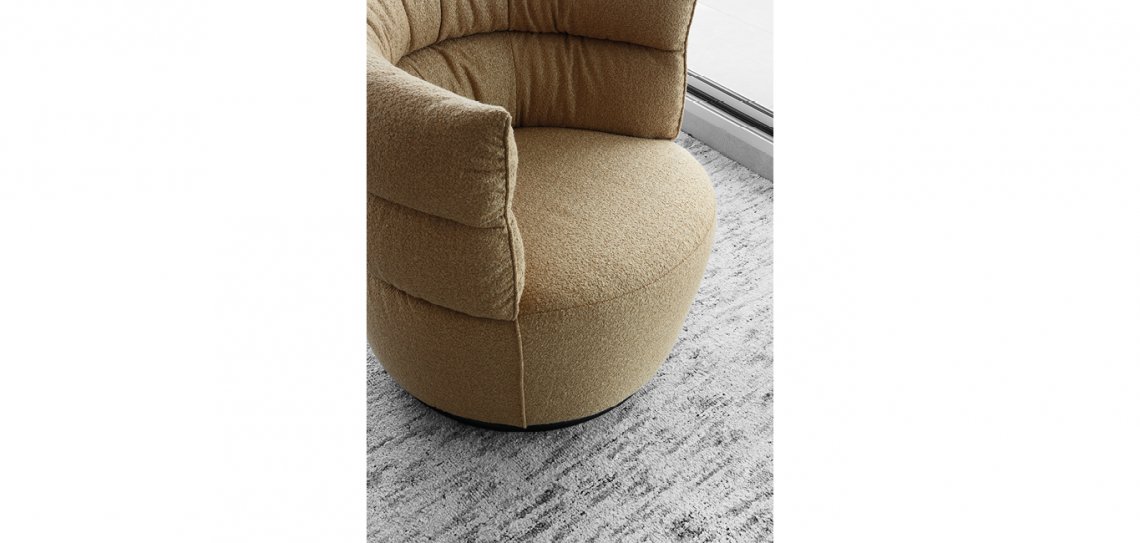 Julie si caratterizza per elementi dal disegno essenziale ma raffinato in ogni dettaglio. Segni peculiari sono l’imbottitura ricca e morbida e le impunture che corrono lungo tutta la superficie dello schienale.
