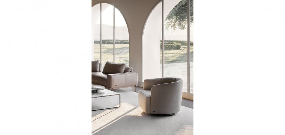 La struttura delle geometrie essenziali, si bilancia con la linea fluida dello schienale avvolgente, per dare vita a una seduta confortevole e raffinata. Dettagli sartoriali e la disponibilità di molti rivestimenti, regalano un aspetto piacevolmente informale.