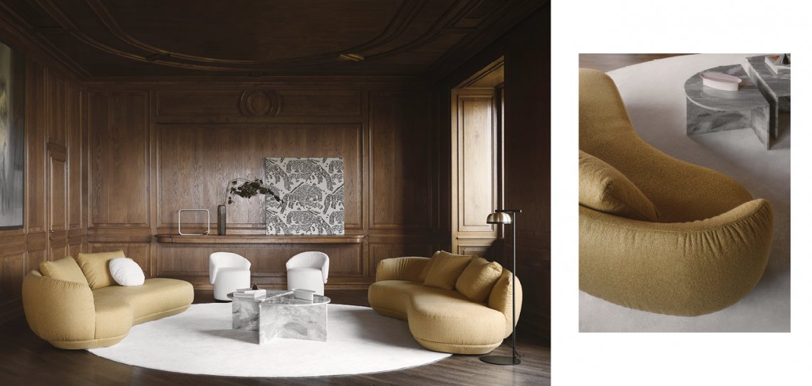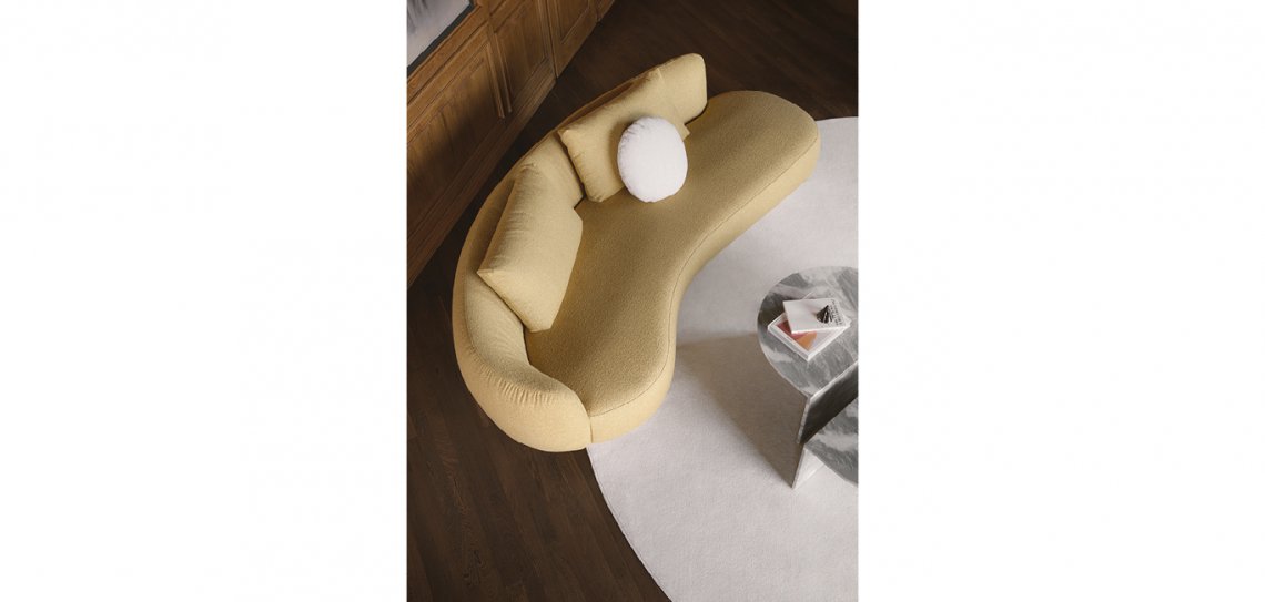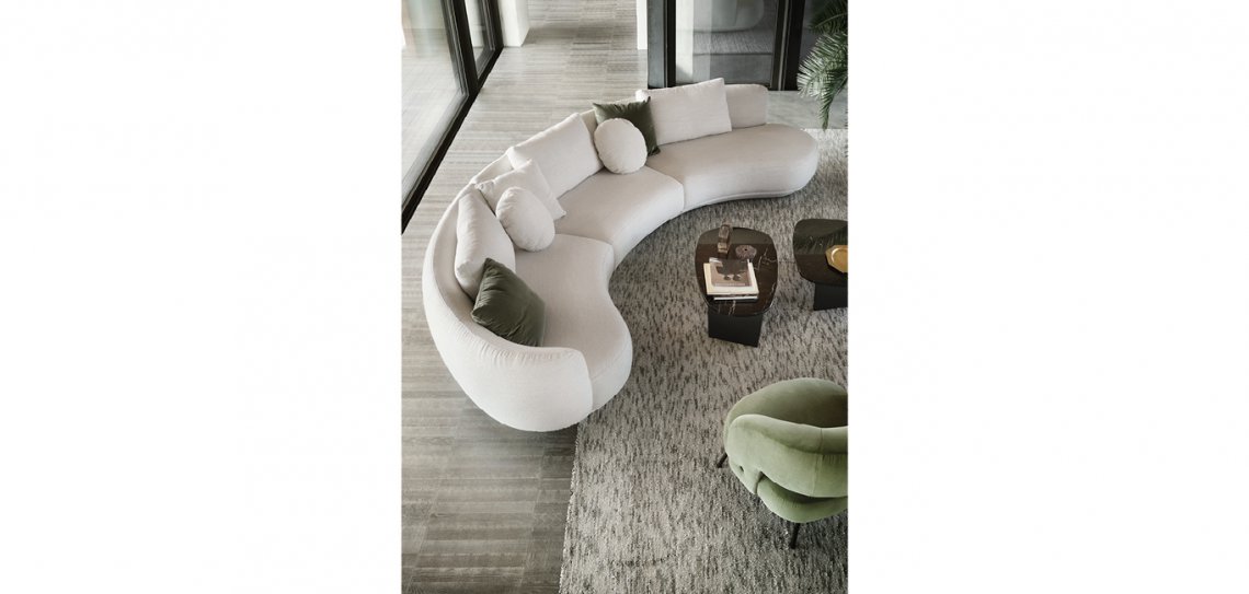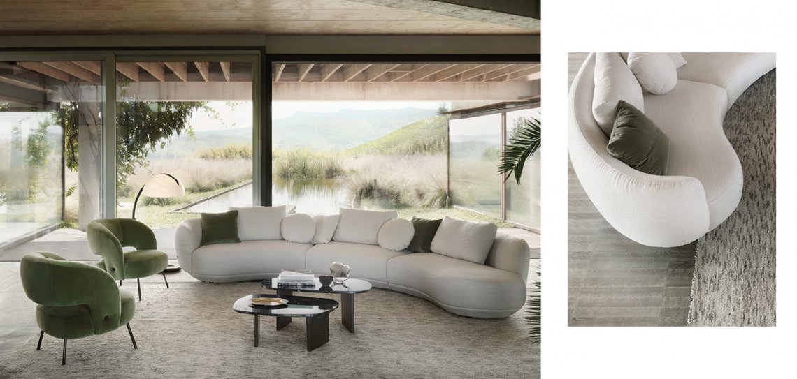 Amalfi e? un divano dalle forme sinuose e sensuali. Ispirato a forme organiche che richiamano il design anni Settanta. Trasforma qualsiasi spazio in un paesaggio elegante e raffinato diventandone il protagonista.