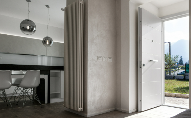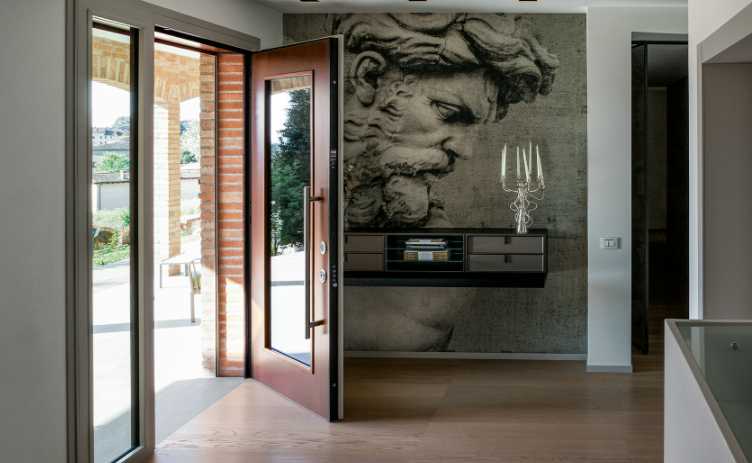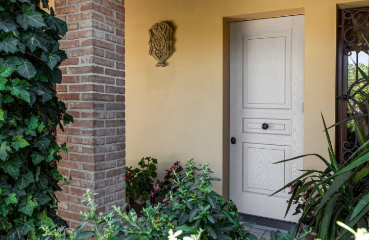 Porta blindata con cerniere a vista che soddisfa ogni richiesta di personalizzazione.L'estetica classica interpretata con il legno, i colori e le lavorazioni ricercate per valorizzare la porta blindata in una vasta gamma di forme e dimensioni. Può essere realizzata a disegno, con inserimento del vetro blindato, multianta, accompagnata da un fianco luce o sopraluce. Sono sempre garantite le massime prestazioni in termini di sicurezza, isolamento termico, isolamento acustico, resistenza aria/acqua/vento.