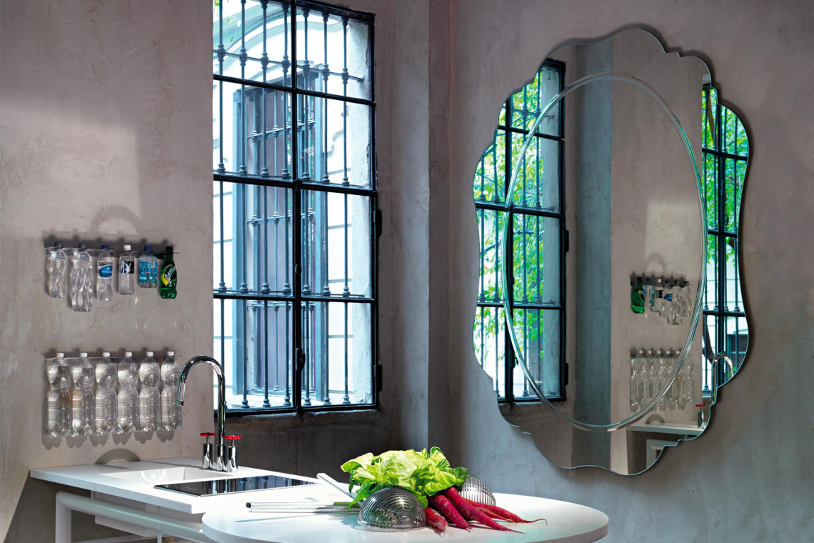 Regio e Regino gli specchi a parete di Paola Navone si rifanno agli archetipi sette-ottocenteschi, ne colgono i tratti caratteristici e ne diventano moderna rivisitazione. Sagomati seguendo le linee classiche presentano un decoro frontale argentato che ne esalta la raffinatezza. Posizionabili alternativamente in orizzontale o in verticale, grazie alla loro forma si adattano ad ogni contesto. A quelli tradizionali donano la leggerezza del mondo delle fiabe, a quelli contemporanei regalano grazia ed eleganza. Sofisticato nel living, incantato in camera da letto, accogliente nell’ingresso, imponente in bagno, Regio (e Regino) sa essere perfetto tanto in casa che negli spazi contract.