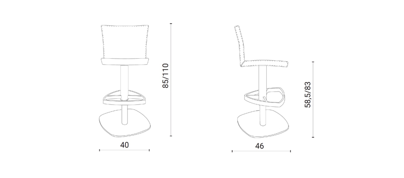 Sgabello con alzata a gas, basamento in metallo e seduta rivestita in pelle o o eco pelle nabuk.