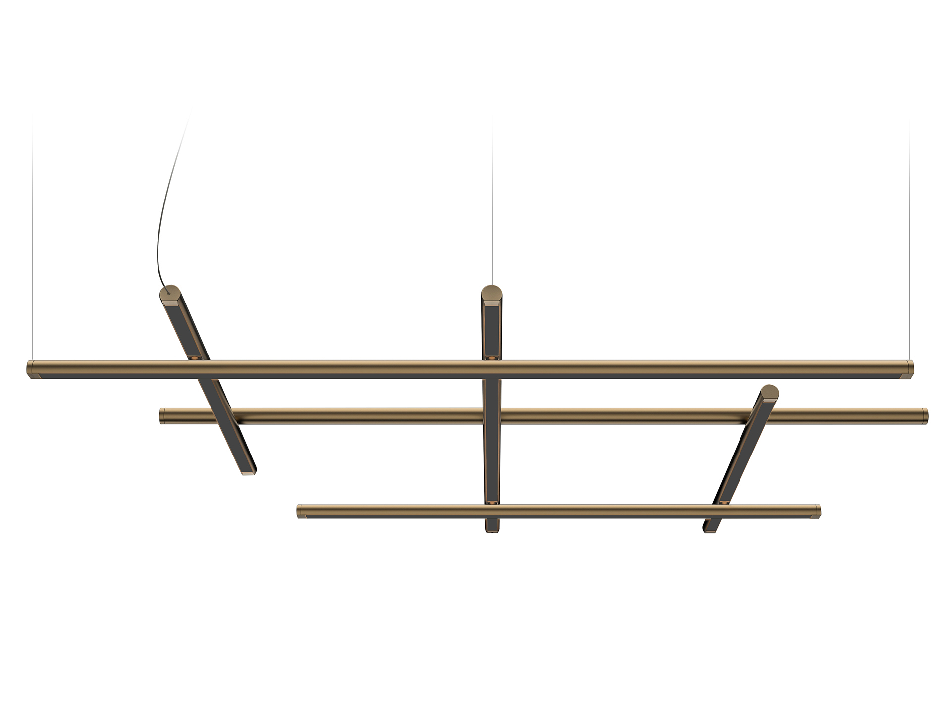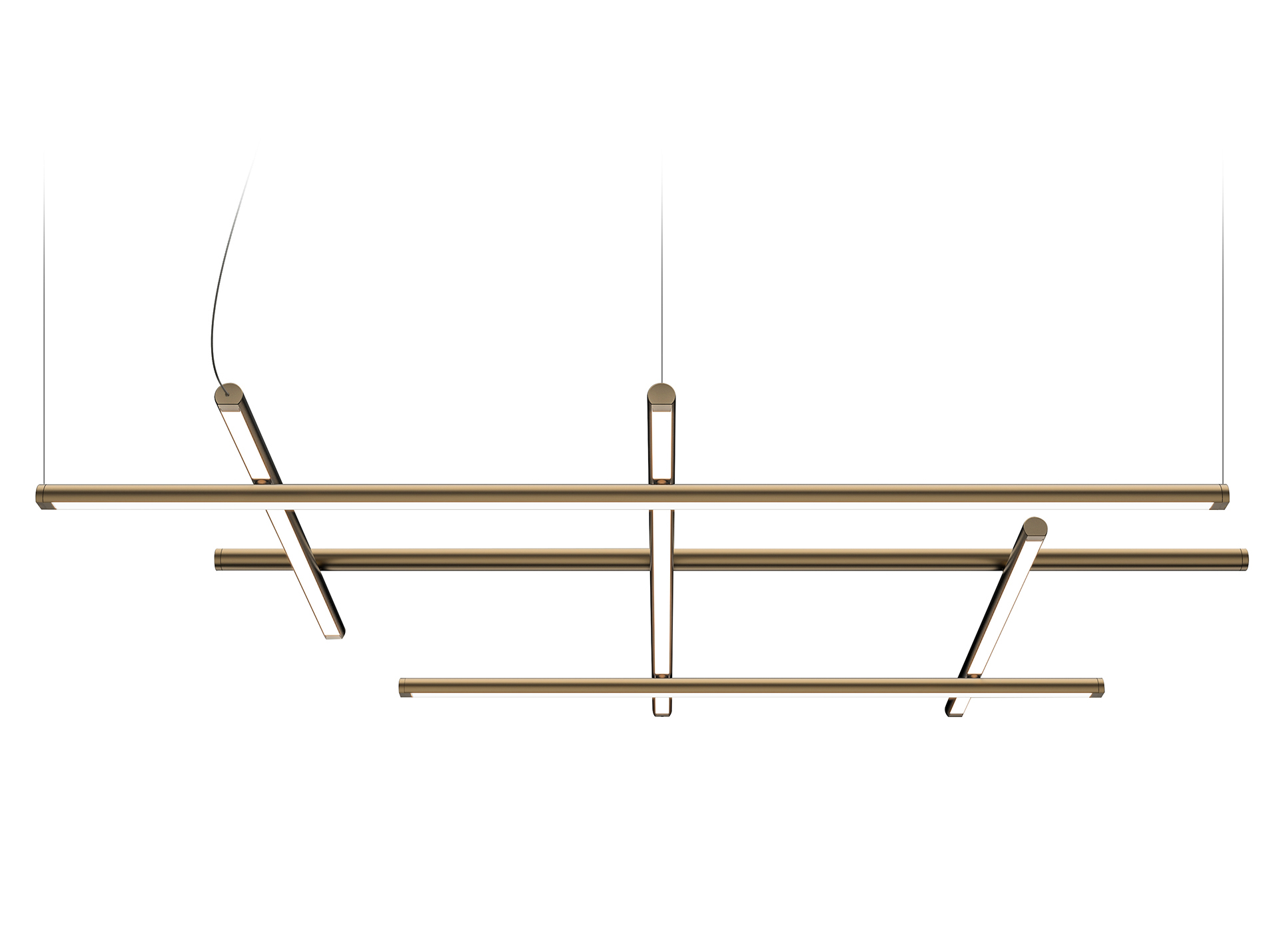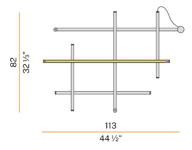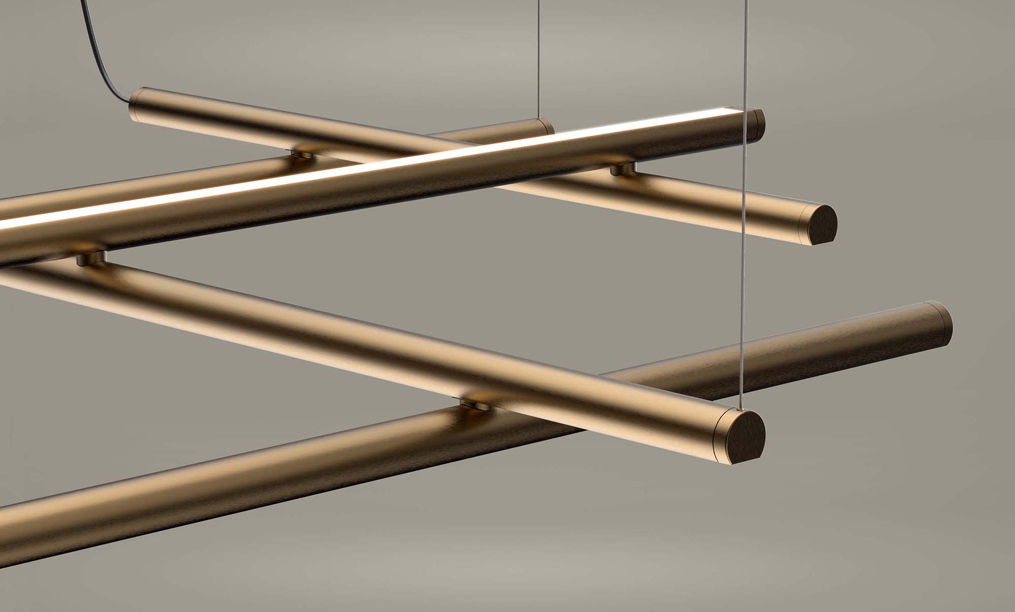 Un corpo illuminante costituito dalla combinazione di elementi lineari trasversali e longitudinali, in grado di caratterizzare con le sue infinite possibilità compositive la scenografia di ogni ambiente. Le numerose varianti consentono un’installazione libera e intuitiva sia a sospensione che a soffitto o parete. La doppia emissione costituisce un ulteriore fattore di versatilità: nella versione a sospensione infatti è possibile invertire l’orientamento delle funi, permettendo l’installazione del prodotto su entrambe le facce per una maggiore illuminazione diretta o indiretta. I modelli a sospensione sono inoltre abbinabili agli articoli To-Be 22, per uno sviluppo tridimensionale delle composizioni. Disponibile nelle finiture bianco, nero satinato, bronzo, ottone satinato e titanio, con diffusori opalini o neri.