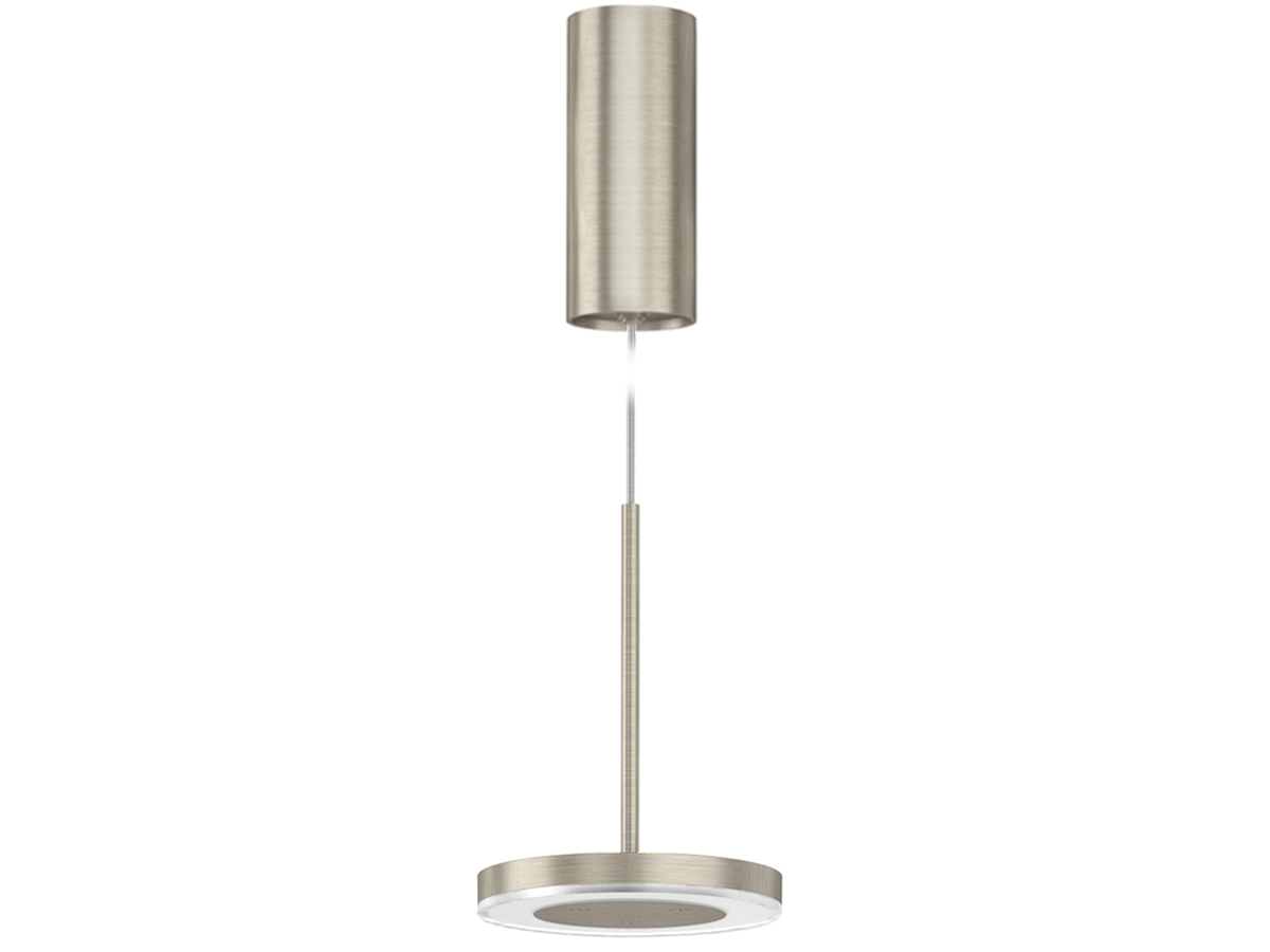 Lampada da sospensione, tavolo e parete (disponibile anche a incasso) con testa in pressofusione di alluminio. Diffusore in materiale acrilico con perimetro luminoso. Braccio conico decentrato, testa orientabile e comando Step DIM a 5 regolazioni di intensità luminosa caratterizzano le versioni da tavolo e parete, quest’ultima con snodo anche alla base, per una maggiore flessibilità nel posizionamento. La versione a sospensione, testa fissa e con tige centrale è disponibile in versione a emissione diretta e indiretta. Disponibile paralume in tessuto color avorio “Bella vestita” disegnato da Matteo Thun, da ordinare separatamente. Bianco, nero, titanio, bronzo e ottone satinato le finiture disponibili.