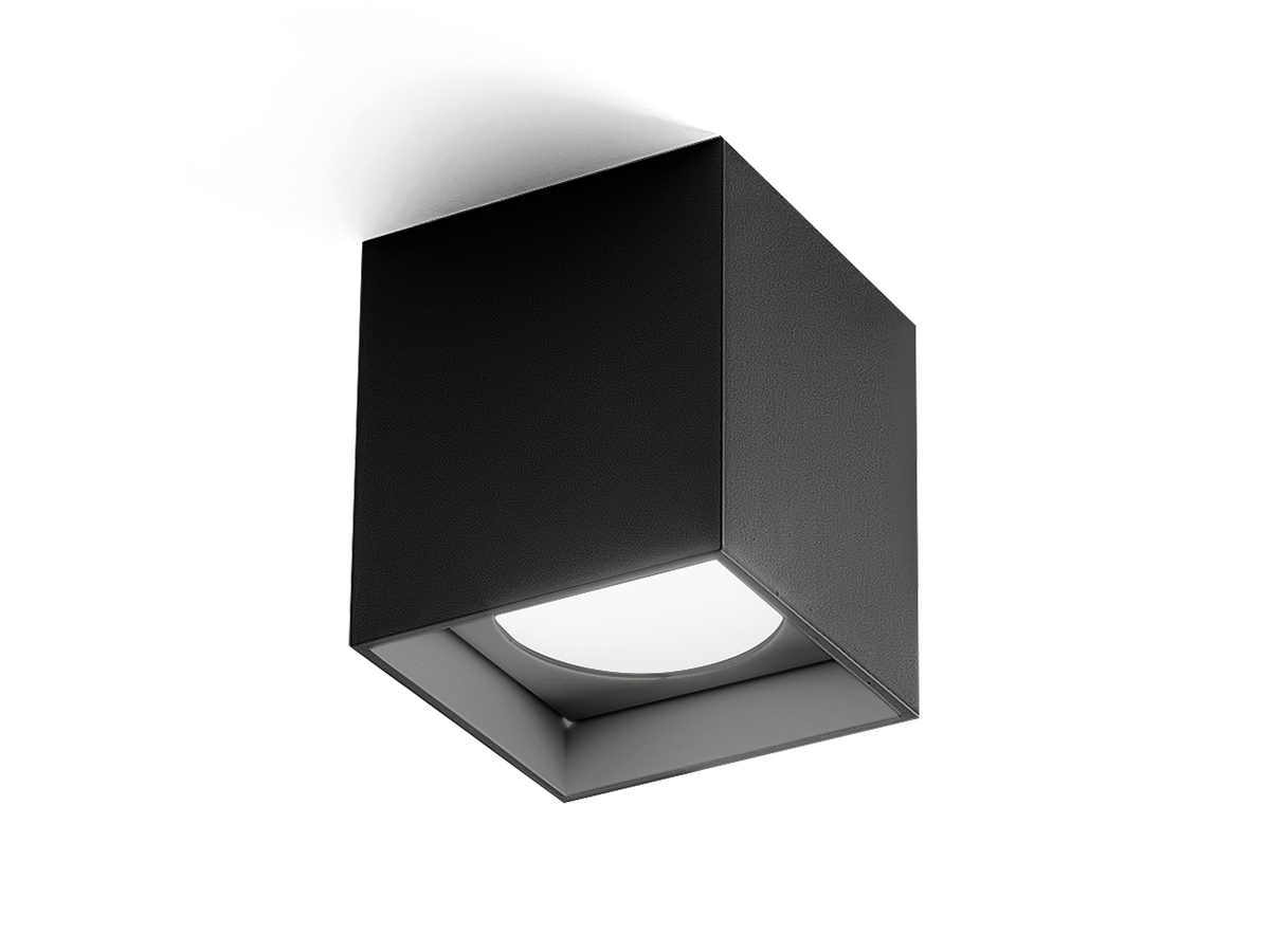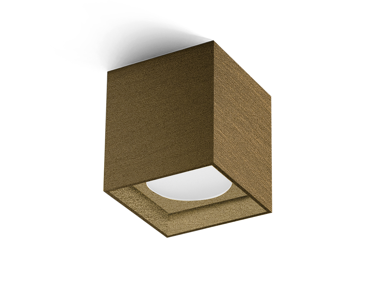 Lampade LED da sospensione e soffitto in tubo quadro di alluminio nei colori: bianco, nero, bronzo, ottone satinato e foglia oro.