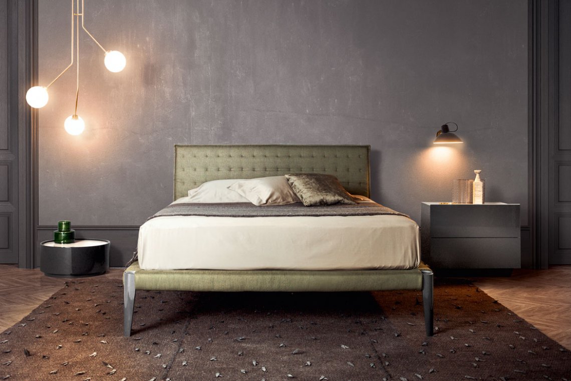 Symmetry and simplicity create a reassuring yet eclectic design. Clean-cut volumes, seamless surfaces, slim and rounded profiles are part of an expressive language that communicates solidity and modernity. The feet, resembling elegant, slim heels, become fascinating distinctive features. For a warmer, more sophisticated version, the headboard and bed frame can be upholstered in fabric or leather. Even the bed’s frame can be customised in many ways: it is available matt lacquered as well as in wood.