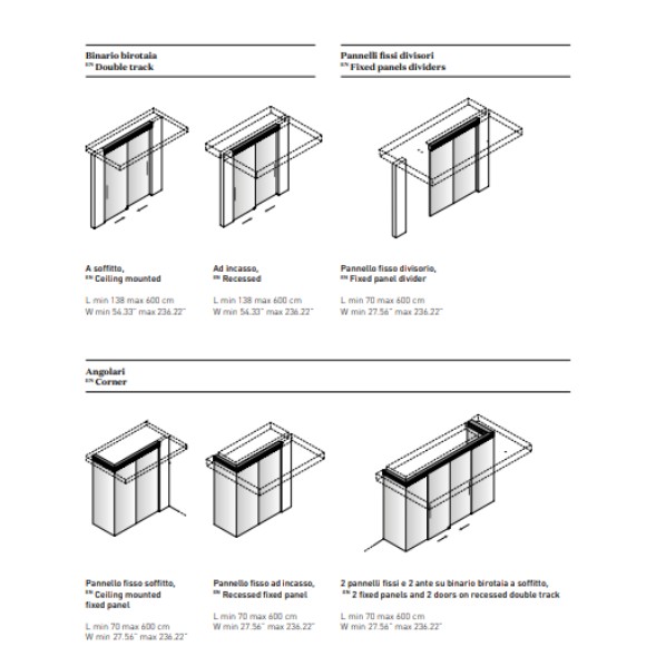 The major features of the sliding door VISTA are the total lack of frames or the very thin perimetral profile and it’s modularity to the centimeter, in order to separate or join spaces.
