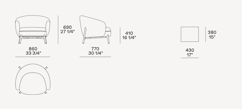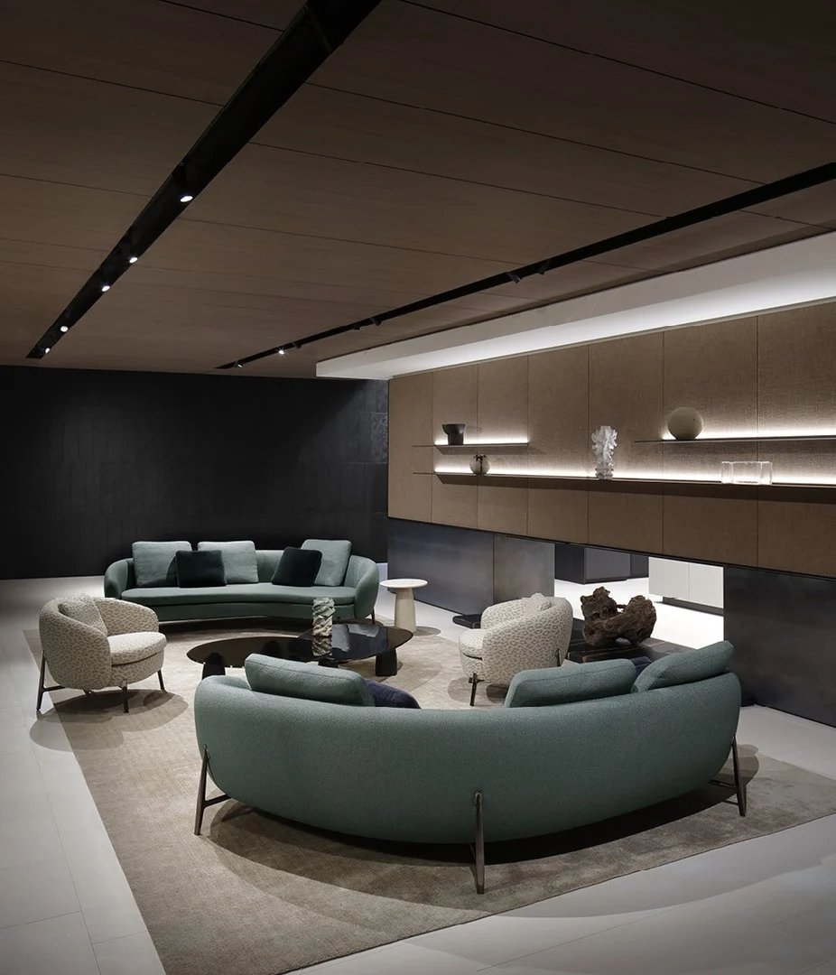 Orbis系列為Poliform家具世界增添了更加親密的空間維度。 扶手椅憑借彎曲包覆的靠背,于客廳中營造出一方專享領地,適于交流、放松及享受生活之趣。座椅的寬敞形態與精細的金屬支腳形成微妙平衡,展現了卓越的工藝水準與裝飾面處理藝術。