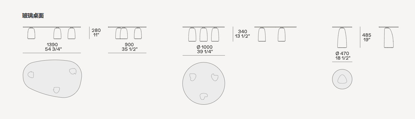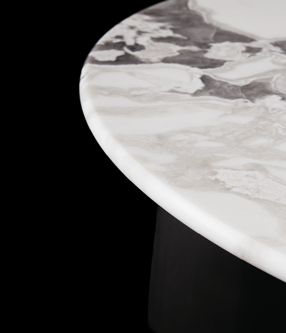 Strata最初作為戶外小茶桌而誕生,現重新詮釋為室內家具。其桌腿采用黑色榆木,臺面則采用大理石和玻璃材料,另外還有一款完全由石灰巖制成,呈現出雕塑般的美感。Strata有各種不同的尺寸和高度可選,臺面有圓形或自然形狀,展現了其獨特的魅力,可與該系列的所有沙發搭配使用。