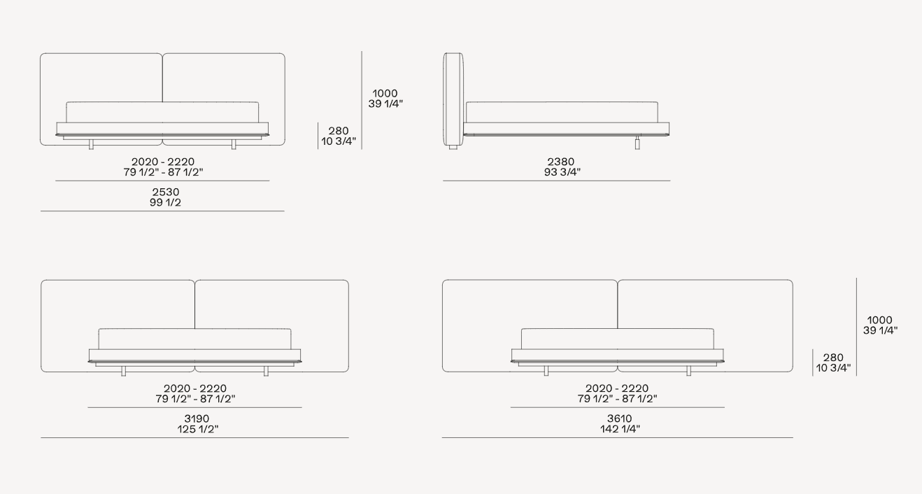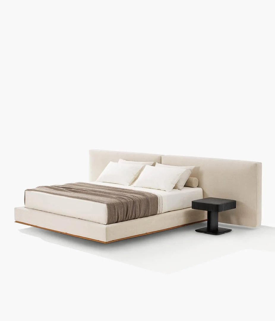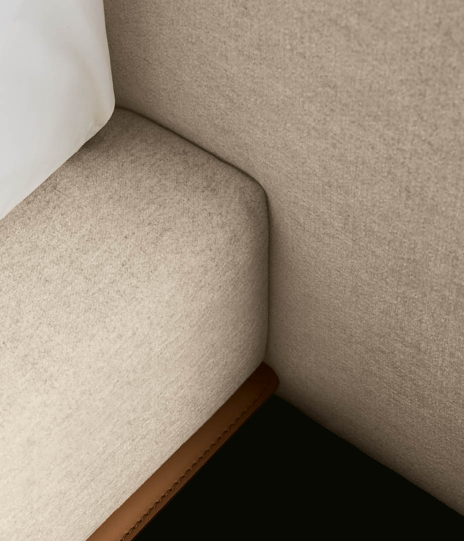 Brera系列以橫向、簡潔而現代的符號來展現其優雅美感。床的設計秉承相同理念,Jean-Marie Massaud巧妙融入鮮明的建筑設計元素,為睡眠空間勾勒出家居景觀。硬皮床架呼應了沙發上的高定細節,床腳和寬大的床頭板也是如此。