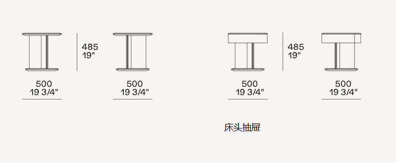 Brera床頭柜與同名床的水平線條和建筑靈感相呼應。床頭柜有兩種尺寸可供選擇,可容納在較寬的床頭板內,配有一個抽屜,飾有大理石等精致飾面。