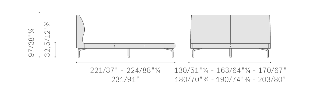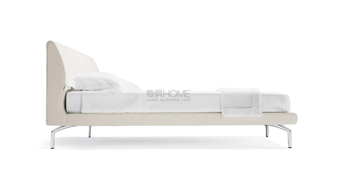 柔軟典雅的線條。舒適的配置。Eosonno床由Luciano Pagani和Angelo Perversi設計,床頭略微彎曲,容納床墊,好似將其環抱。四個金屬支腳支撐結構,帶來與當代相符的風格。