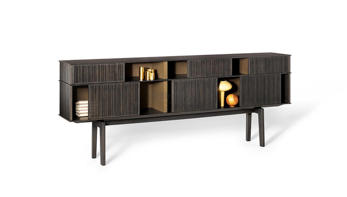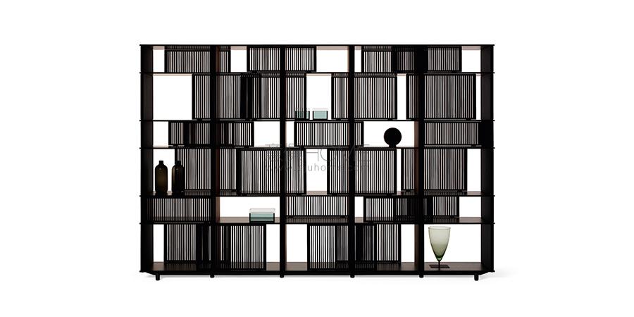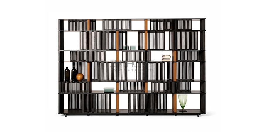 Jean-Marie Massaud為L(zhǎng)loyd收納柜和書柜設(shè)計(jì)了一套靈活的幾何系統(tǒng)。纖細(xì)的垂直木片構(gòu)成輕盈的格柵,可以沿隱形水平軌道全長(zhǎng)滑動(dòng)。每個(gè)格柵均可根據(jù)喜好移動(dòng),構(gòu)成多變的序列。虛與實(shí)、明與暗相互結(jié)合勾勒出的多變圖譜。透過這樣的感性組合,可以瞥見放在柜子中的書籍和物品,但不會(huì)展現(xiàn)全部。最先進(jìn)的技術(shù)與木材和皮革傳統(tǒng)材料相結(jié)合,帶來堅(jiān)實(shí)而簡(jiǎn)約的結(jié)構(gòu)。