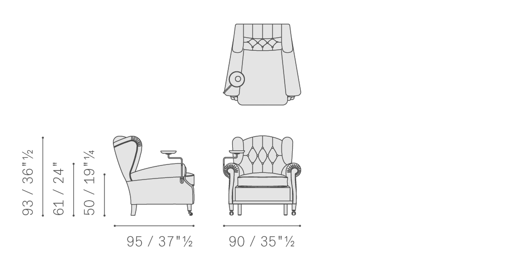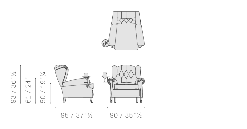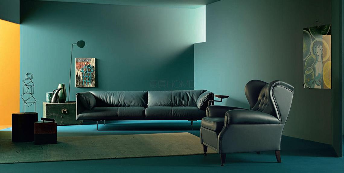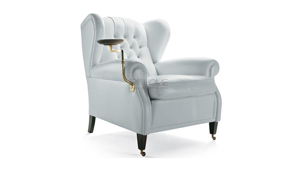 “1919”扶手椅的名稱源自其設計日期,在檔案中的實際代碼為“128”。它可能是Renzo Frau為皮斯托亞公爵Filiberto Ludovico di Savoia定制設計的產品。盡管屬于特殊定制品,但它依然是Poltrona Frau最初且在公眾中取得最大成功的產品之一。“1919”重新詮釋了高背沙發的經典款式,與前期產品相比,在靠背上增加了個性鮮明的纓球包墊。此外還有其它特點,在支腳支撐上增加了一個長條細節,可以選配小型扶手式桌臺,設計初衷是用于盛放公爵的煙灰缸,他是一位眾所周知的雪茄愛好者。