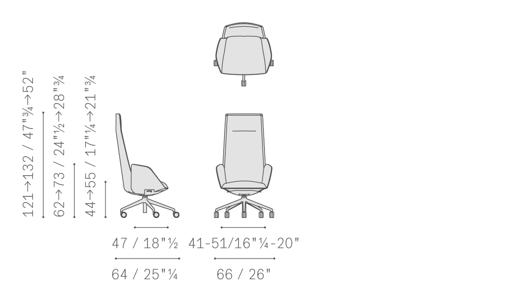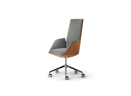 Cercle辦公室靠背椅中,對人體力學的研究尤為深入。同步機械裝置與整體骨架相結合,經過Poltrona Frau的進一步優化,能夠帶來絕佳的舒適性能。結構采用聚氨酯,配金屬內芯。內部填充具有不同密度的聚氨酯泡沫,為不同區域帶來更高舒適度,同時絎縫聚酯棉。五支腳底座采用拋光鋁或黑色噴漆鋁,通過連接支桿與底盤相連,支桿中裝備空氣彈簧,根據底座所用表面處理進行噴漆。支撐點為“W”型軟質或硬質自鎖輪。表面覆蓋Cuoio Saddle Executive鞣制皮革和Pelle Frau?皮革,完全沒有縫線,彰顯座椅的外形美感。Cercle也可以完全覆蓋Pelle Frau?皮革,或者進行搭配,在骨架上覆蓋皮革或鞣制皮革,內表面覆蓋皮革或布藝。