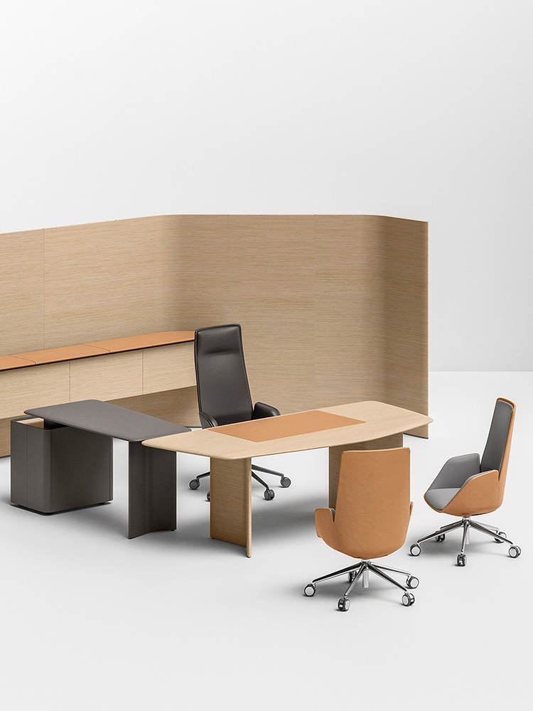 事實上,Cercle在加泰羅尼亞文中的含義是“互相對話的人組成的圈子”。Lievore、Altherr、Park的設計項目與Poltrona Frau的總裁辦公室新理念完美契合:其外形與品類以增進關系為主旨,設計目的在于激勵一種更加適應開放空間中當代經理人的工作方式,即分享理念并將自己的創造能力與他人結合。