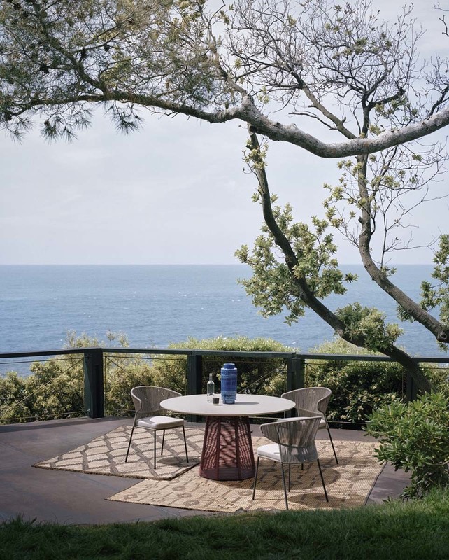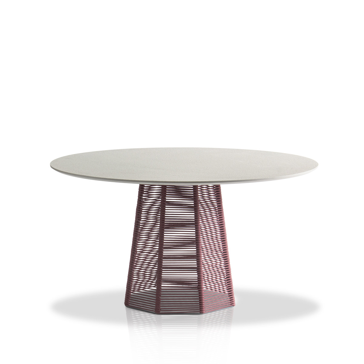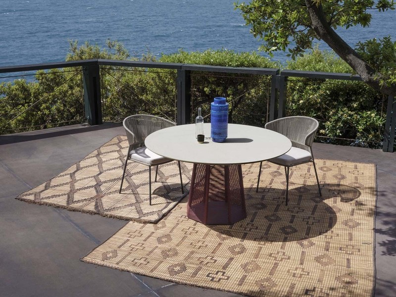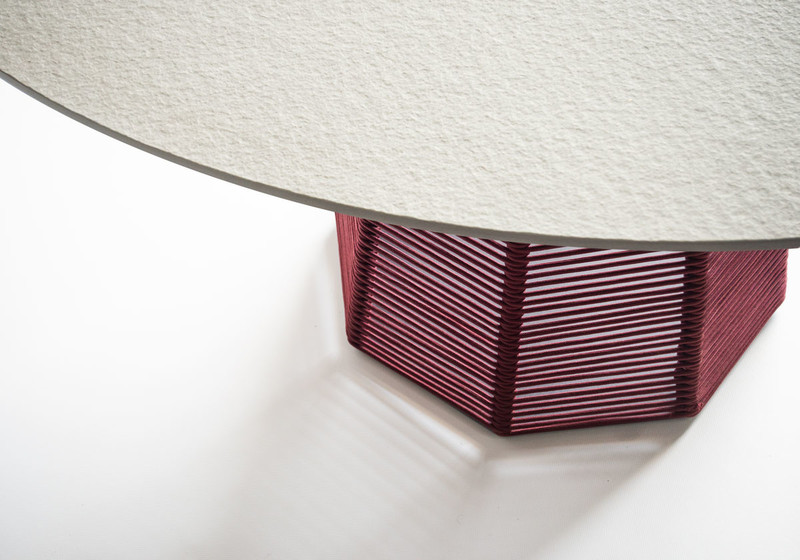 The Sophie outdoor table consists of an octagonal base in epoxy powder coated steel covered in hemp or Red Grape nautical rope.