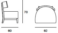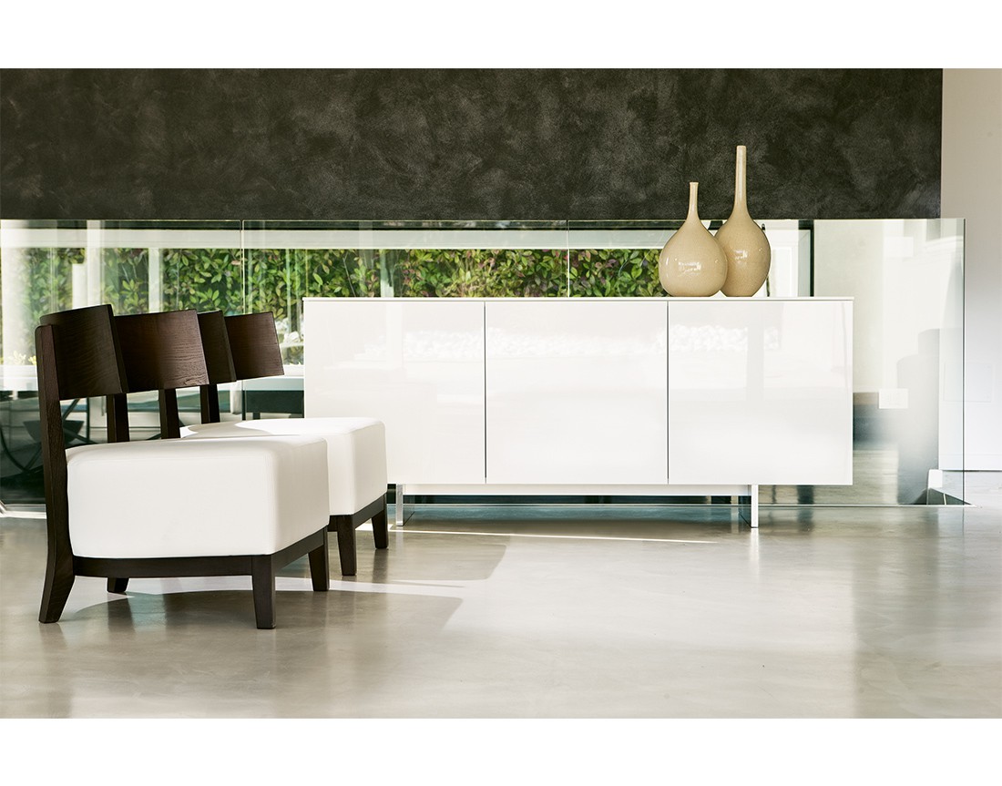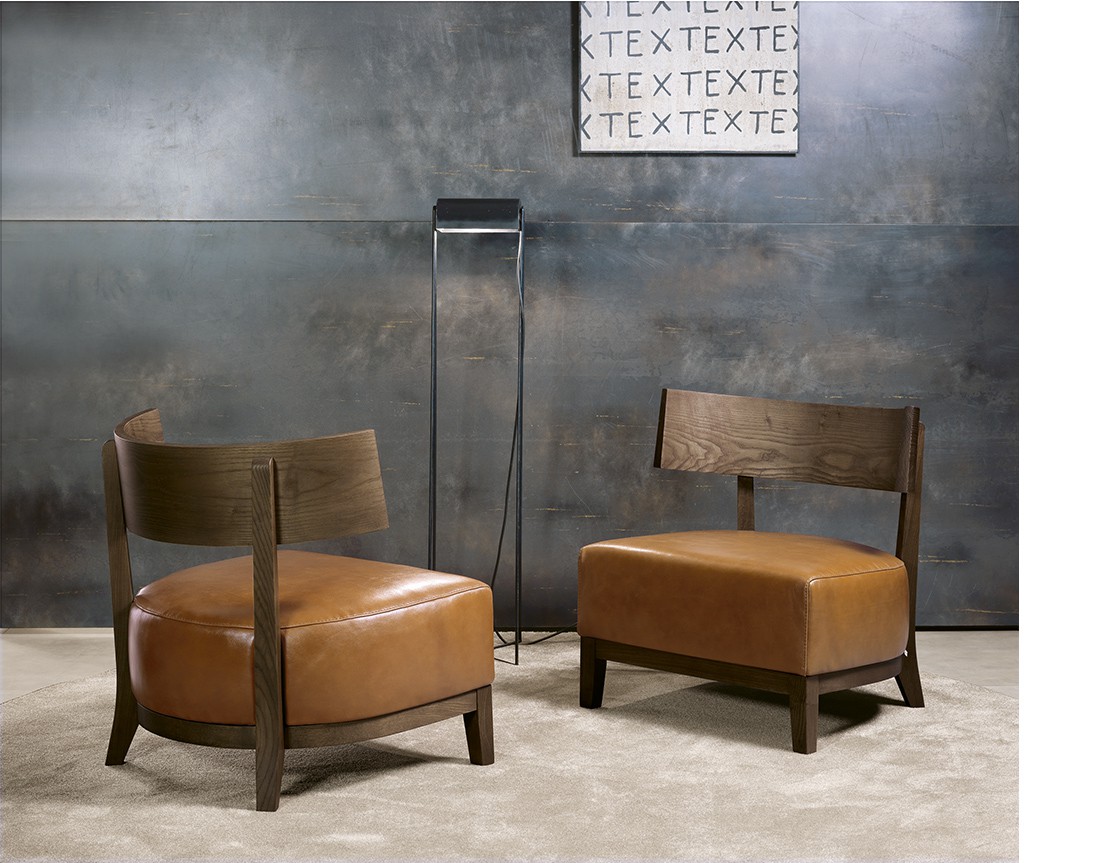Poltroncina con struttura in massello di frassino rivestita in pelle, ecopelle o tessuto della collezione. Rivestimento in tessuto fisso o sfoderabile. Finiture disponibili: FN frassino naturale, CL ciliegio americano, WG wengé, NC noce, TB tabacco, laccato opaco poro aperto ( L21 bianco, L29 madreperla, L23 cappuccino, L25 grigio fumo, L22 nero, L24 rosso ).