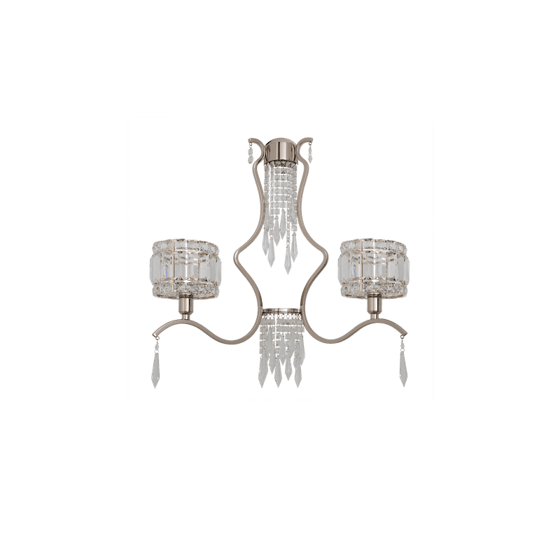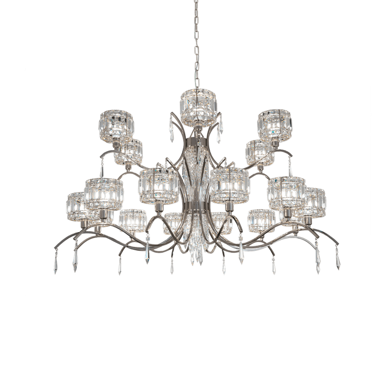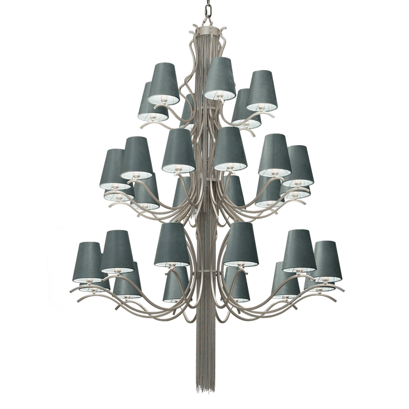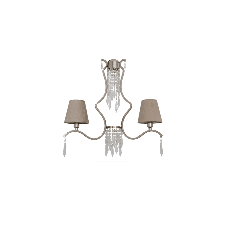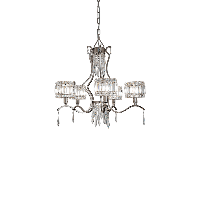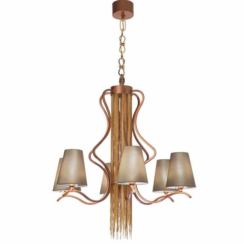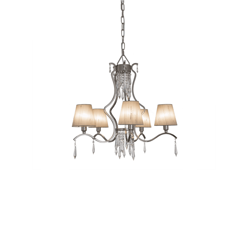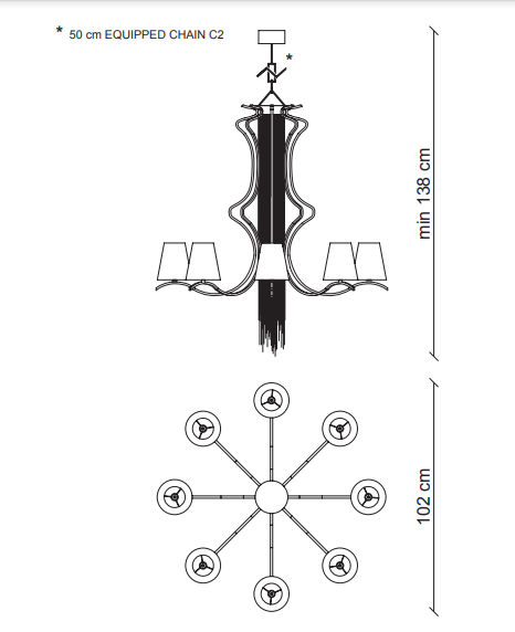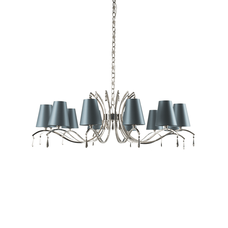 A series of metallic bending ramifications that unravel in space, starting from a branching point. A vibrating structure that sustains a carousel of delicate lampshades. A lamp which joins a retro style with the allfeminine habit of tout-court decoration.