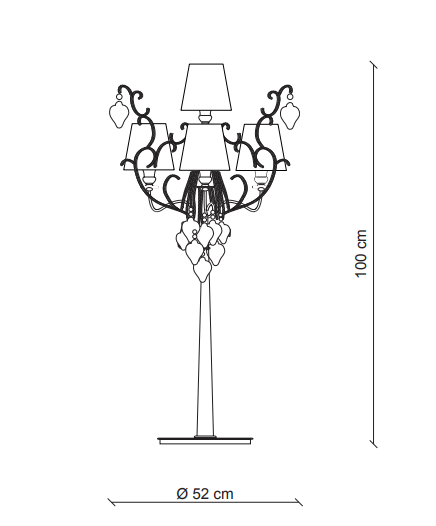 Looking upwards it seems like there are strawberry fields on the ceiling! Ophelia, which has been the company’s symbol for years, has evolved into different models of itself. In the last model the strawberries have been substituted by prisms in clear crystal, while lampshades created with crystal lozenges have made their way in favor of the traditional fabric ones.