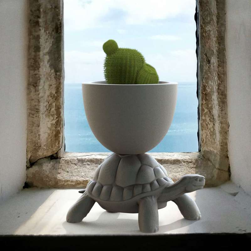 or greenery to flourish or your champagne bottles to be freshly popped, you need something ex-shell-ent and that’s where Qeeboo Turtle comes in! The Turtle Carry Planter designed by Marcantonio will do the trick carrying a holder on its carapace, usable both as champagne cooler or as housing for plants and succulents.