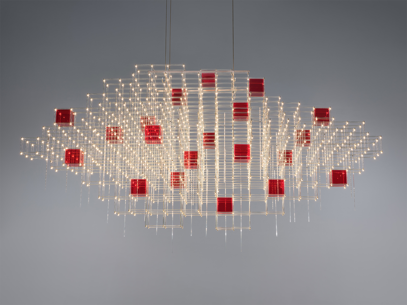As an extension of the Cosmos Globe series. A very subtle frame is carrying the light sculpture without affecting its unique appearance. Perfect in an open spacr, in front of a wall or in a corner.