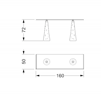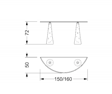 Console. Bases in solid Murano glass, multicoloured or RUGIADA finish. Glass top 15mm thick with 45° bevel.