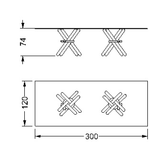 Dining table. Base with legs in smooth Murano glass blue, green, ruby, transparent or white sandblasted.