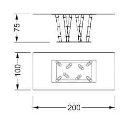 Dining table with base composed by transparent Murano glass tubes with black filigree. Plinth in smoked mirror glass. Extra–clear glass top 15 mm thick