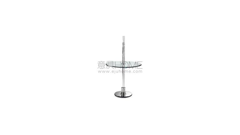 Side table with round mirror base. Rod in Murano glass with sandblasted top portion.Glass top 10mm thick with 45° bevel. LED lighting system.