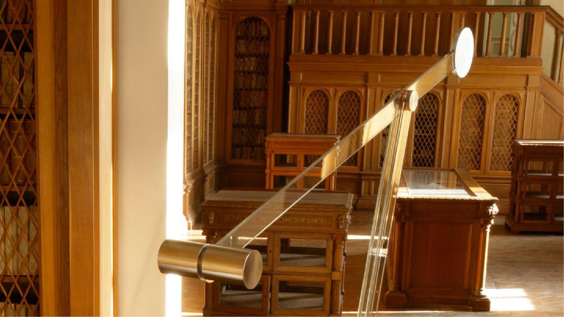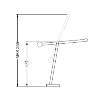 Adjustable floor lamp with turning round base, titanium dark finish. Tempered glass supports 15 mm th. Lampholder in polished stainless steel. LED lighting system