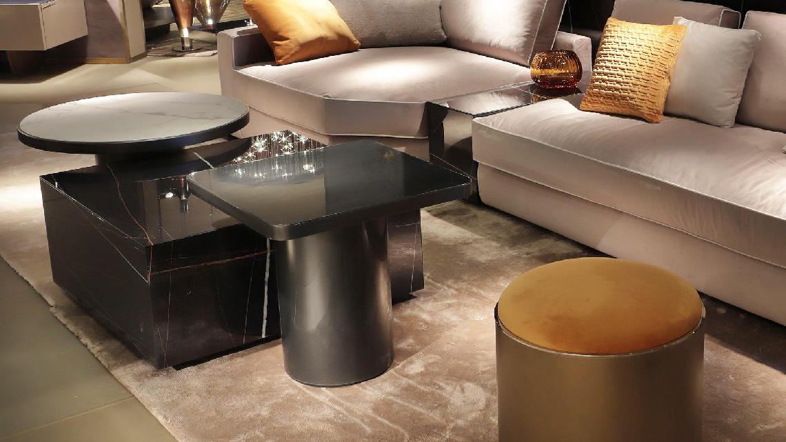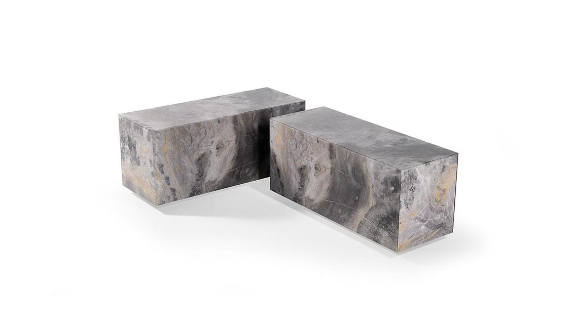 Coffee and/or sofa-insert tables with internal wooden structure and external cover in leather or in glass and Marble-glass