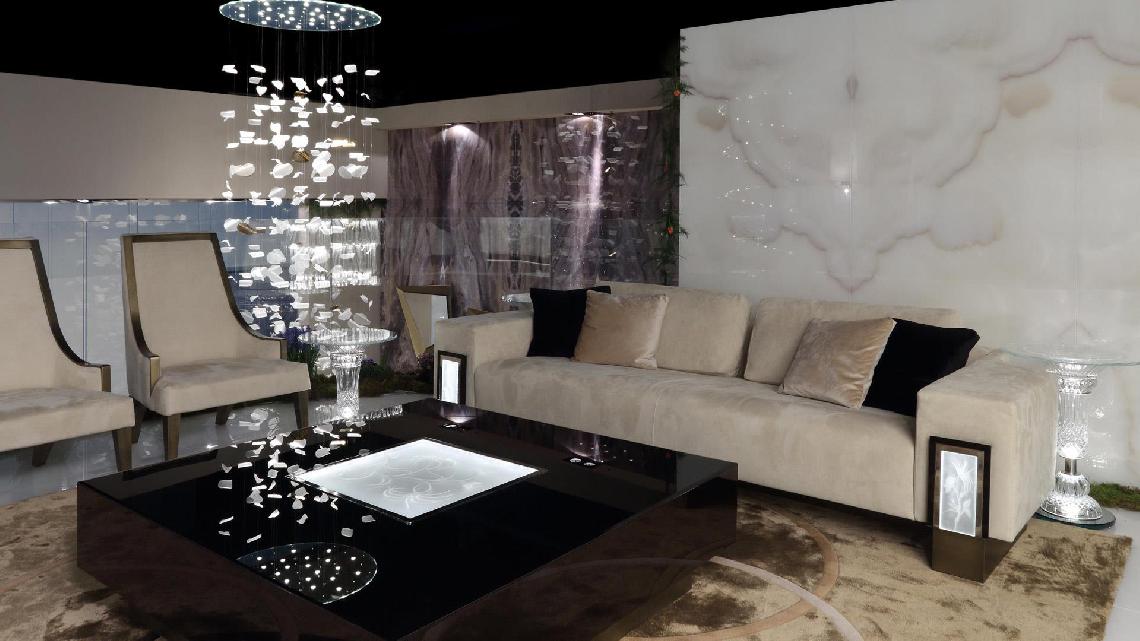 Coffee table with wooden plinth in satin brass finish. Wooden top in shiny lacquered finish covered in lacquered glass or in shiny ebony with a tile in engraved glass in the centre.