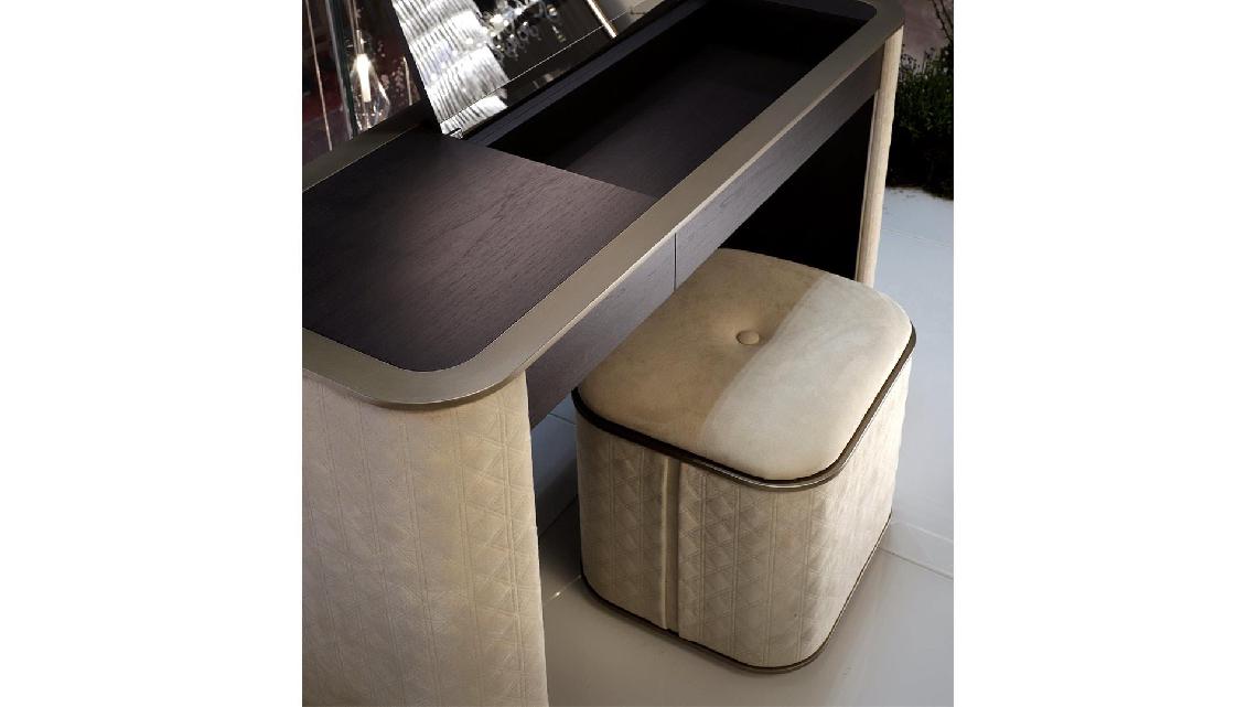 Pouf with padded seat. Upholstery in leather or fabric with SAN MARCO quilting. Details in the satin finish brass.