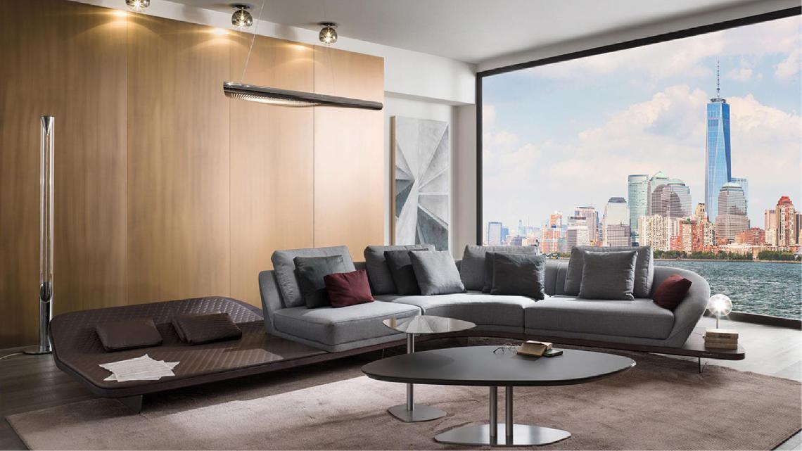 Sofa with wooden structure padded with polyurethane foam. Seat cushions in polyurethane. Patented back cushions in feather with polyurethane insert internally composed by two lift layers to grant different comfort levels.