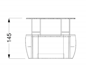 Shaped sideboard/bar cabinet in matt lacquered finish or in satin brass or titanium finishes. Top in Marble glass. Electrical lifting system with remote-control to pull out the internal storage unit equipped with glass shelves and bottle-holders.