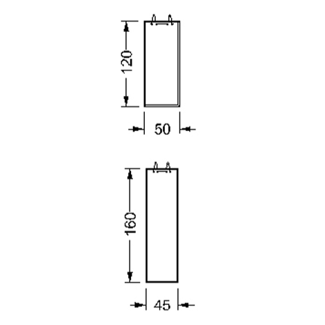 Mirror 5 mm thick with 45° bevel with hanging steel cables and supports.