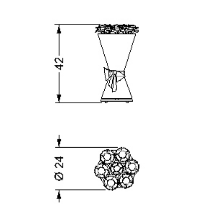 Table lamp with base in mirror glass. Iron support with lampshade in ivory pleated fabric and cover in sandblasted glass with flower decorations in transparent Murano glass. LED system