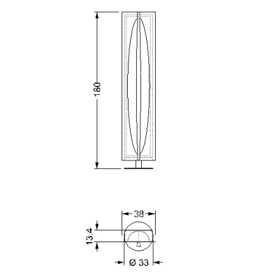 Floor lamp in extra clear curved glass 5 mm thick in gold leaf finish on swivel base in etched lacquered glass, creta colour. Metal support in brass finish. Vertical bar in burnished brass with LED STRIP