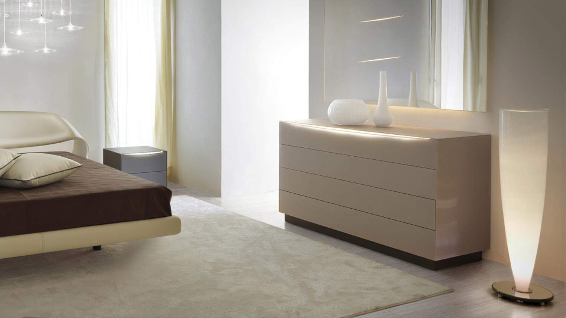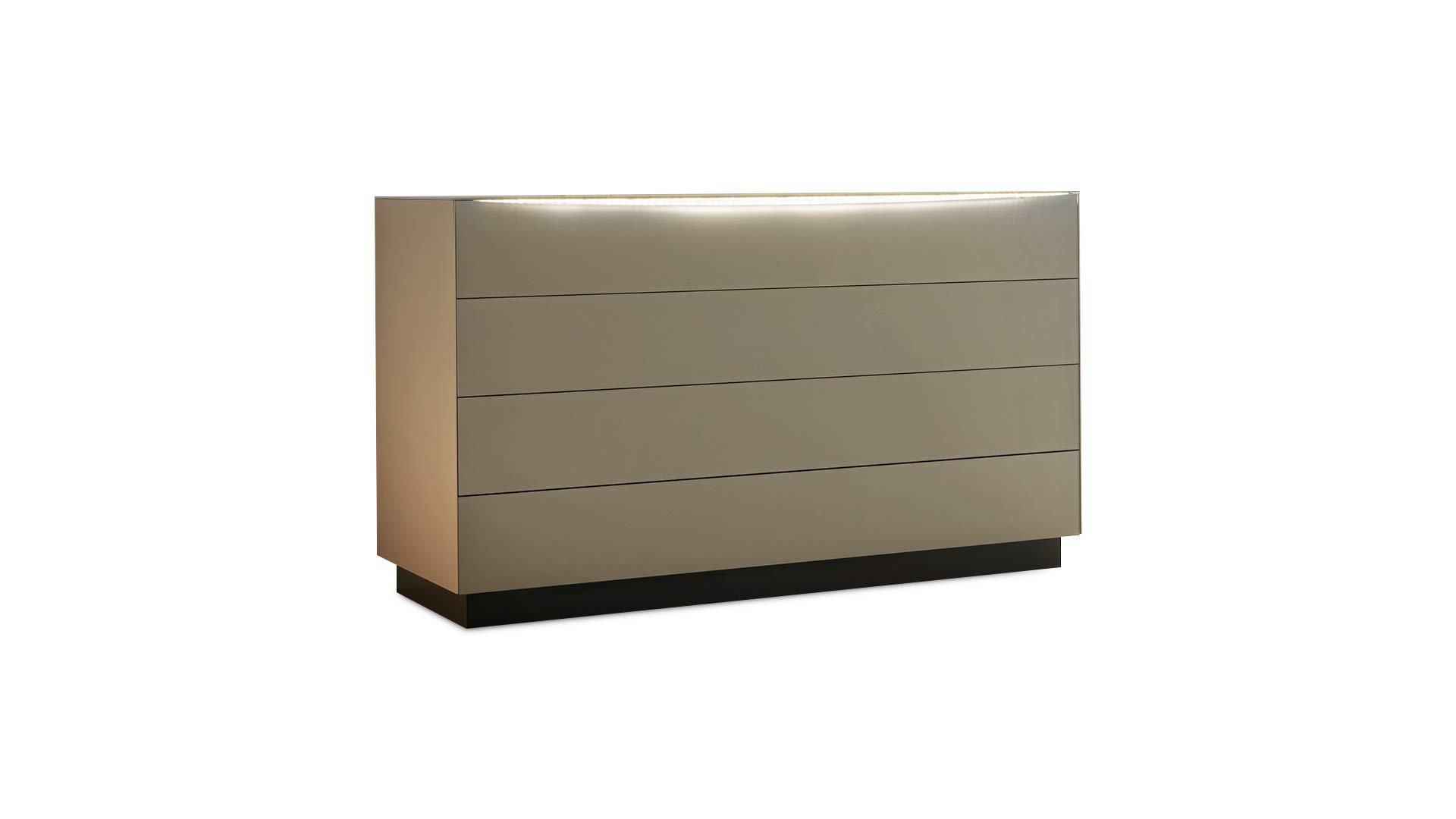 Chest of drawers with wooden structure covered in lacquered or etched lacquered glass, standard colours.
