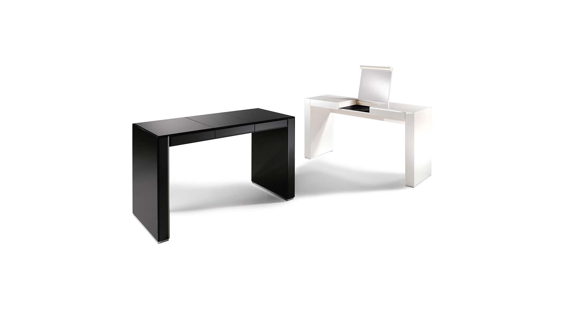 Desk-toilette unit in shiny lacquered wood with applications of bevelled lacquered glass.