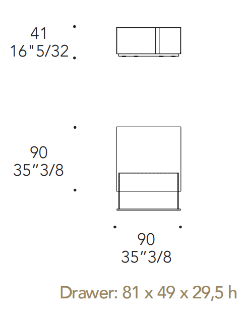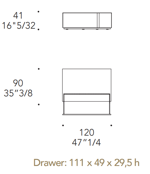 Tavolino con cassetto rivestito in vetro MarmoReflex/ LegnoReflex con inserti in finitura Bronze (100M) e specchio bronzo.