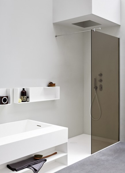 Una geometria nitida definisce la vasca Unico squadrata in Corian, disponibile in tutti i colori a listino. Può essere accessoriata con tutti i sistemi benessere.