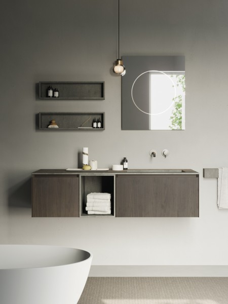 Una geometria nitida definisce la vasca Unico squadrata in Corian, disponibile in tutti i colori a listino. Può essere accessoriata con tutti i sistemi benessere.