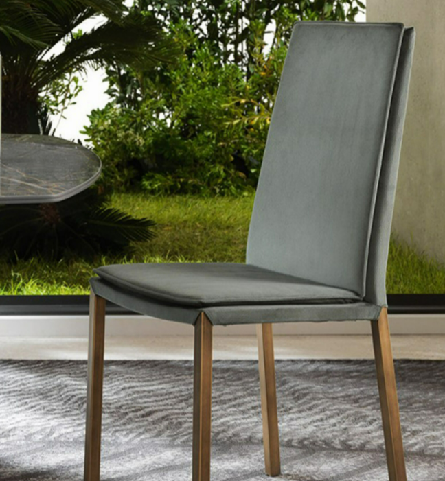 La sedia Anna è interamente rivestita, ha una struttura in acciaio e lo schienale e la seduta sono imbottiti e non sfoderabili. Sul retro presenta una cerniera decorativa. Rivestimenti in tessuto, pelle, similpelle, econabuk, smacchia e velluto