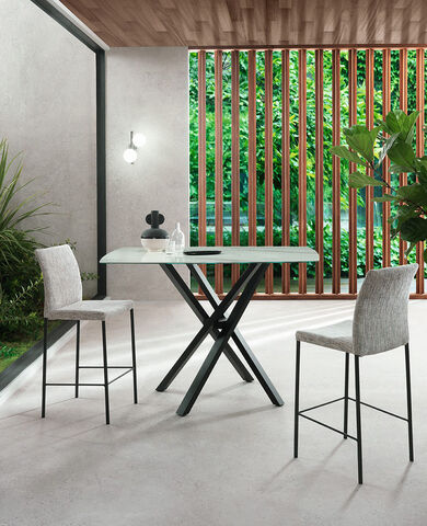 Il tavolo Atlante è interamente in legno, disponibile nelle finiture noce canaletto e rovere coke termo-trattato. Le gambe a cavalletto della larghezza di 17 cm gli conferiscono un aspetto maestoso. La bisellatura del piano mette in risalto le calde venature del legno. Il tavolo è dotato di un sistema di allunghe con guide in alluminio anodizzato. Le allunghe, da 40 cm, sono interne in biglia con il