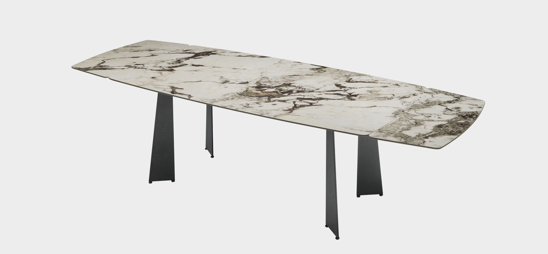 Il tavolo Atlante è interamente in legno, disponibile nelle finiture noce canaletto e rovere coke termo-trattato. Le gambe a cavalletto della larghezza di 17 cm gli conferiscono un aspetto maestoso. La bisellatura del piano mette in risalto le calde venature del legno. Il tavolo è dotato di un sistema di allunghe con guide in alluminio anodizzato. Le allunghe, da 40 cm, sono interne in biglia con il