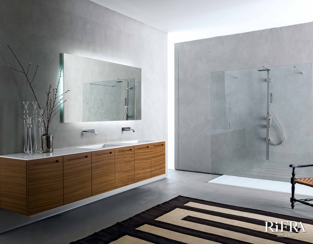 Il modulo che disegna K.LINE è il 40 cm, sviluppato sia in larghezza che in altezza. K.LINE è inoltre caratterizzato da una gola laccata, vero e proprio segno distintivo della collezione, che percorre tutto il profilo superiore del mobile e può essere laccata opaco a piacimento.