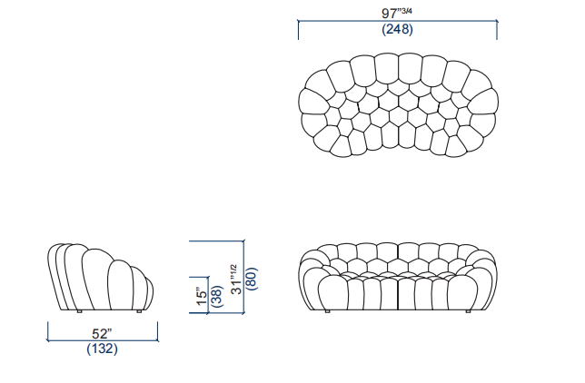 Immaginato da Sacha Lakic, designer appassionato dalle tecnologie d'avanguardia, Bubble esprime l'equilibrio tra innovazione, funzione ed emozione. Ispirato da forme naturali e minerali ed interamente realizzato a mano, la sua creazione ha richiesto lo sviluppo di tessuti estensibili specifici che avvolgono perfettamente le sue forme arrotondate.